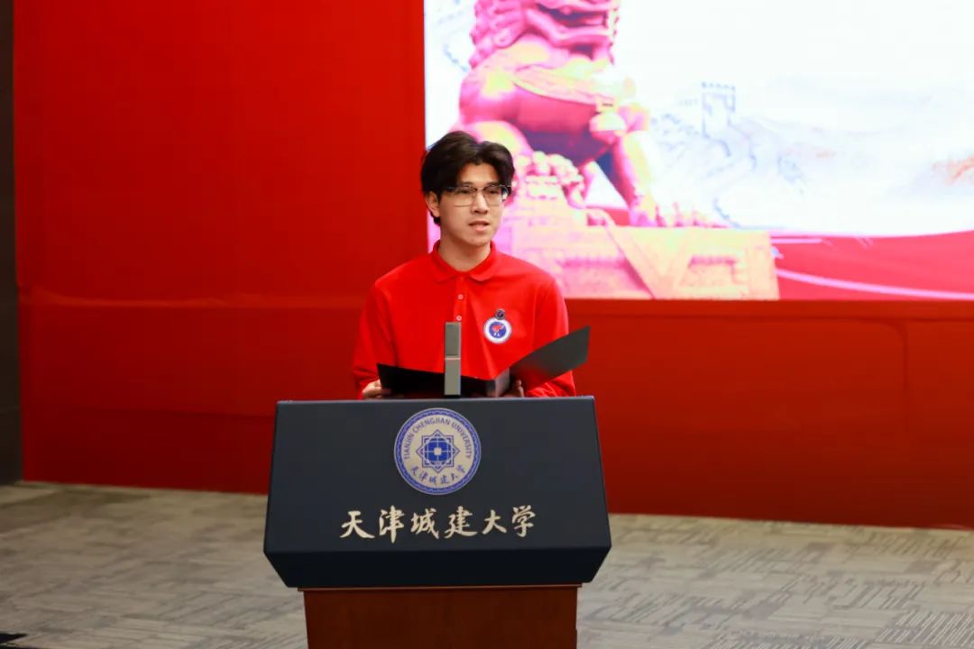 天津市青马工程第七期高校班学员、第五期“薪火班”学员代表,外国语学院郑梦璐进行发言。她首先回顾了自己与“青马”结缘的心路历程,表示通过在“薪火班”一年的学习,强化了自己的理论水平、锻炼了自己的实践能力,用自己的实际行动,讲述家乡红色故事、传播红色精神,未来“薪火班”的学员们将勠力同心、砥砺奋进,自觉成为有理想、敢担当、能吃苦、肯奋斗的新时代好青年,将“请党放心,强国有我”的铮铮誓言兑现在充满光荣和梦想的新征程上。