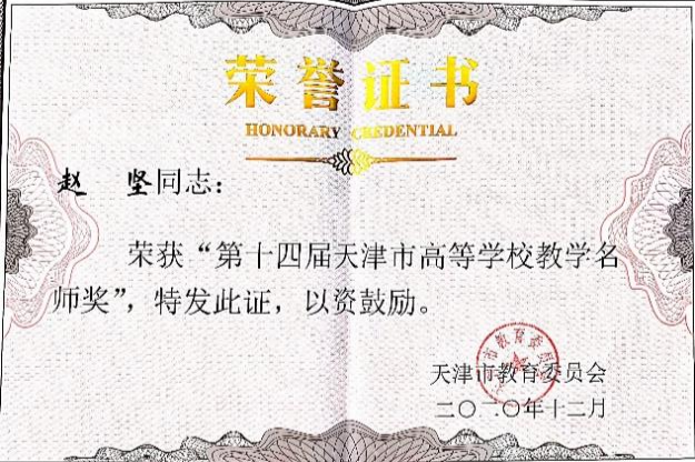 赵坚教授,天津市教学名师,天津市三八红旗手,天津市优秀共产党员。作为课程负责人,2020年获批国家级一流本科课程、2022年获批天津市创新创业教育特色示范课程、2019年获批天津市虚拟仿真实验教学项目(课程)。作为专业负责人,2021年获批国家级一流本科建设专业、2021年获批天津市试点建设首批虚拟教研室、2018年获天津市优秀专业教学团队。