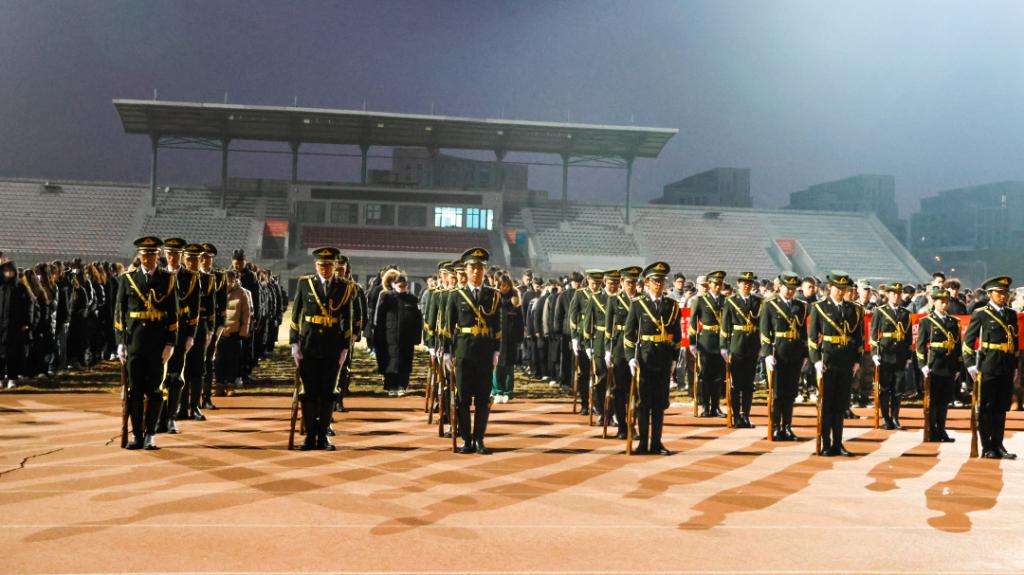 为弘扬爱国主义精神,缅怀同胞,铭记历史,在第十个国家公祭日来临之际,学校举行“铭记历史·祈愿和平”国家公祭日主题升旗仪式。学工部相关负责人,红旗班、国旗班、预储班、少数民族预科班、退役士兵代表和师生代表共计450人参加。
