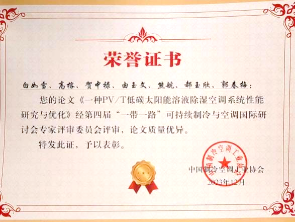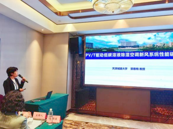 本次大会设两个分论坛,郭春梅教授在制冷空调新技术分论坛作题为“PV/T驱动低碳溶液除湿空调新风系统性能研究”学术报告,介绍了课题组在蒸发冷却溶液除湿方向上取得的研究成果,报告内容涵盖了PV/T驱动低碳溶液除湿空调新风系统构建、性能研究与优化及其对于建筑节能减排所起到的有益效果,受到与会嘉宾一致肯定。