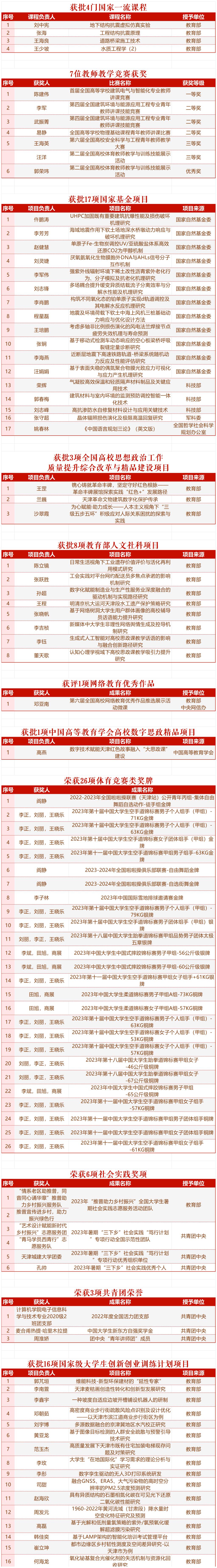 这一年,我们开拓创新、积厚成势,强师兴教的“城大智慧”更具力量。我们加大力度引进和培育高水平、高层次人才,全球前2%顶尖科学家榜单和国家级人才再创新高,年薪制激活师资队伍的活力。我们努力做好“有组织的科研”,国家基金项目连续多年获得突破,科技创新能力全面提升,科技成果转化合同额4倍增长。我们创新建设4个跨学科创新研究院和1个天津市技术创新中心,最大程度激发科研人员的创新活力。我们深化现代产业学院建设,深入推进校企合作,与津燃华润、天津住宅集团、地下铁道集团等20家大型企业签署战略合作协议,瞄准新质生产力,培育一流新动力。