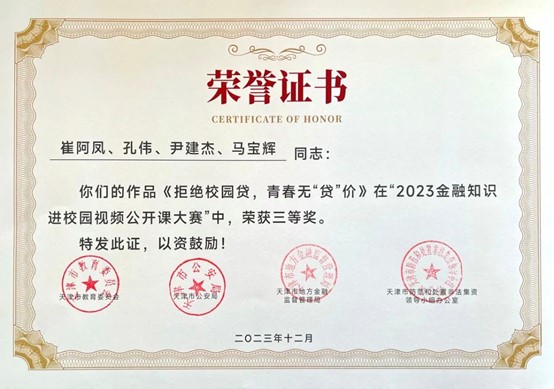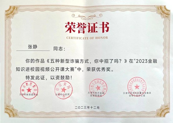 近日,市教育两委公布了2023年天津市教育系统国家安全重点课题调研获奖结果和天津市2023年金融知识进校园视频公开课大赛获奖结果。伟德官网1项课题,5幅作品纷纷获奖,学校被评为2023年金融知识进校园视频公开课大赛优秀组织单位。