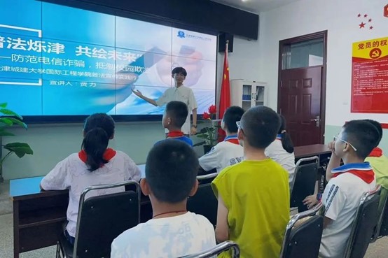 国际工程学院“新时代·习近平法治思想实践行”实践团深入天津、山西的社区、乡村、中小学等基层一线,策划开展“普法烁津 共绘未来”主题实践活动。实践团队成员结合专业特色,共开展习近平法治思想宣讲10余次,覆盖人群达5000人次,拍摄发布普法视频浏览量破万,设计制作普法互动游戏、文创产品8类,形成调研报告1篇,通过图文、视听、多媒体、互动游戏、文创产品五位一体宣传体系,寻求大众最易于接受、喜闻乐见的法治宣传策略,将习近平法治思想扎根基层,深入民心,团队事迹被津云等多家媒体报道。今后,实践团将继续创新方式方法,不断提高普法宣传的效果和影响力,为构建社会主义法治国家贡献力量!
