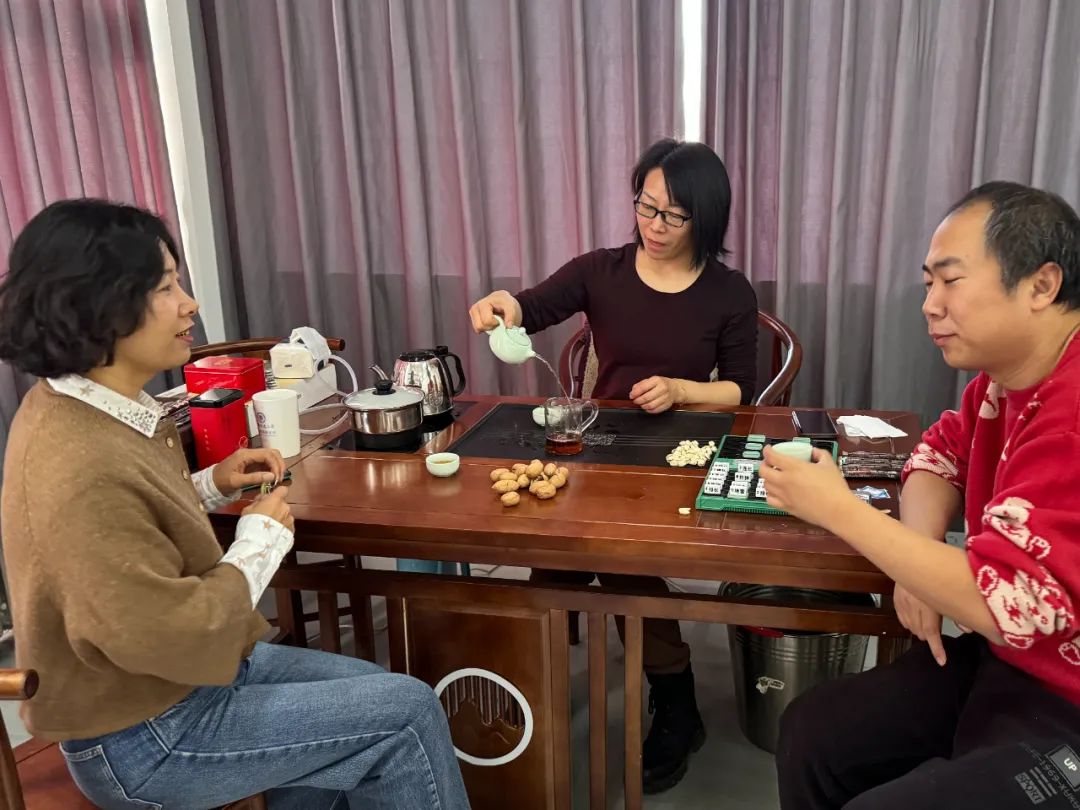 紧张的劳动之余,图书馆分工会还依托“教工之家”积极组织举办职工文体联谊活动。以“身体好才能工作好”为主题的本学期第四次文体联谊活动,吸引大家踊跃报名积极参加。活动现场棋牌、猜词、歌唱、运动等项目让大家在忙碌劳累之余多了一份轻松和愉悦。图书馆教职工们有的用自己的“长枪”镜头为大家记录着开心每一刻,有的带着自家的“丸子”公主选色调色打印设计活动现场标语、精心设计制作现场小奖品,有的为活动奉献爱心赞助,有的自驾车起早赶到王顶堤批发市场“砍价”采买到价廉质优的新鲜水果和小食品。有的老师还将家里的布娃娃拿来作为现场抽奖礼品,其他分工会委员及教职工们积极帮着布置活动现场、组织各项活动开展,为大家煮“功夫茶”……在开心快乐的氛围中大家增进了彼此了解和共事情感,凝聚了干事创业的力量。