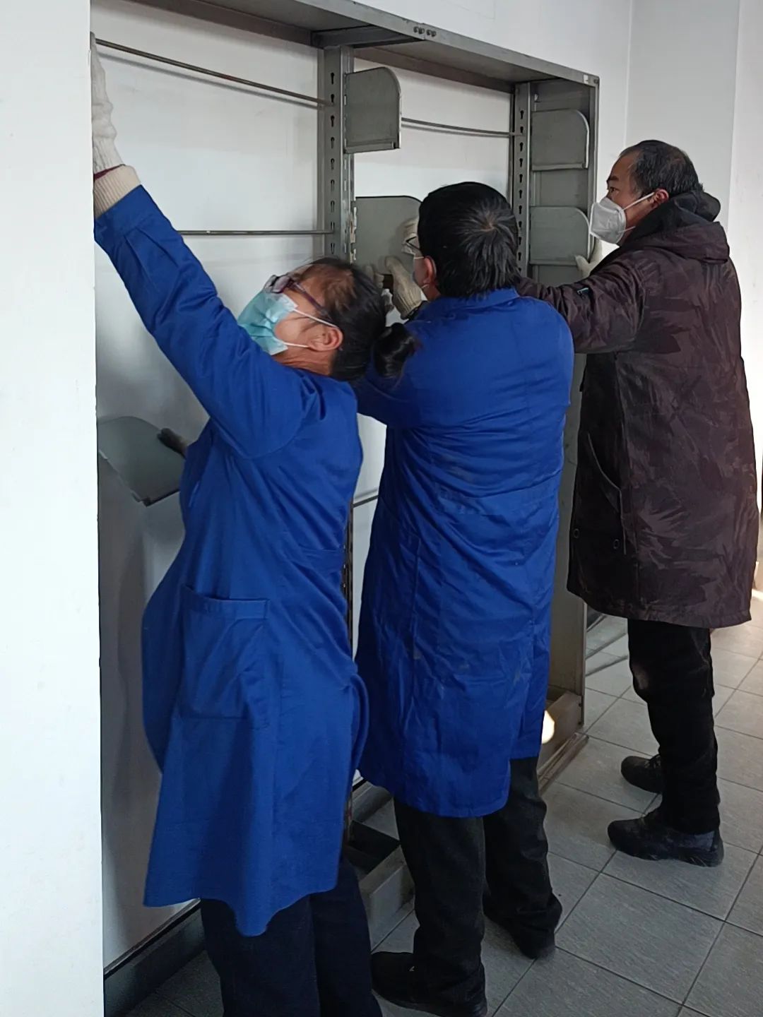 书格架找到了,如何能顺利安全摆放到位满足使用呢?连日来,馆内每天一早就将当天的任务安排发布到工作群,大家就自觉主动认领任务积极工作。全馆男教职工几人一组,手搬肩扛、抬运车拉安全顺利完成了40余组书格书架和70余个条桌的拆卸、组装和固定安置工作,对个别尺寸较大的男教工们就手把手接力一个台阶一个台阶地从一层楼爬到高一层楼。全馆女教工也不甘示弱,按照部门分成三组纷纷拎起水桶端起水盆拿起抹布打上热水对所有书格书架、个别房间电线网线及环境卫生进行清理保洁。尽管每天大家的劳动工作内容随着“战场”调整都会变化,但团结干事的热情和为同学们创造更好学习条件的师者仁心没有丝毫变化。