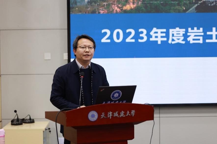 会上,科技处处长刘中宪教授作2023年度岩土工程学科建设工作报告,详细汇报了学科概况、科研工作、社会服务、学术交流、资源建设、存在问题以及未来规划等内容。