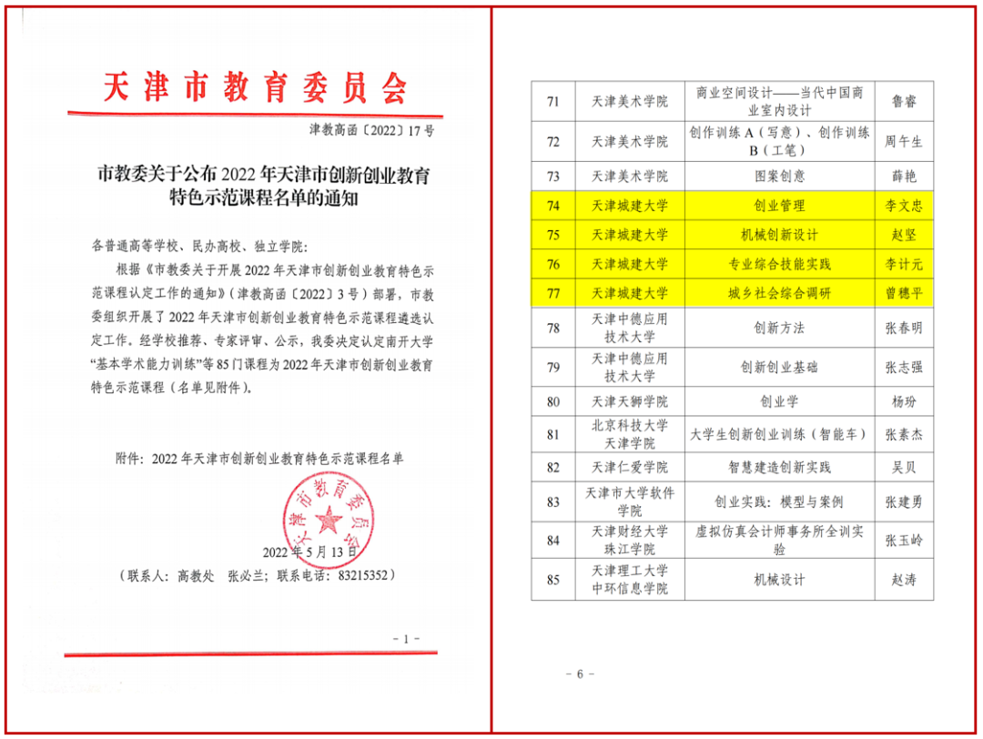获批4门天津市创新创业教育特色示范课程