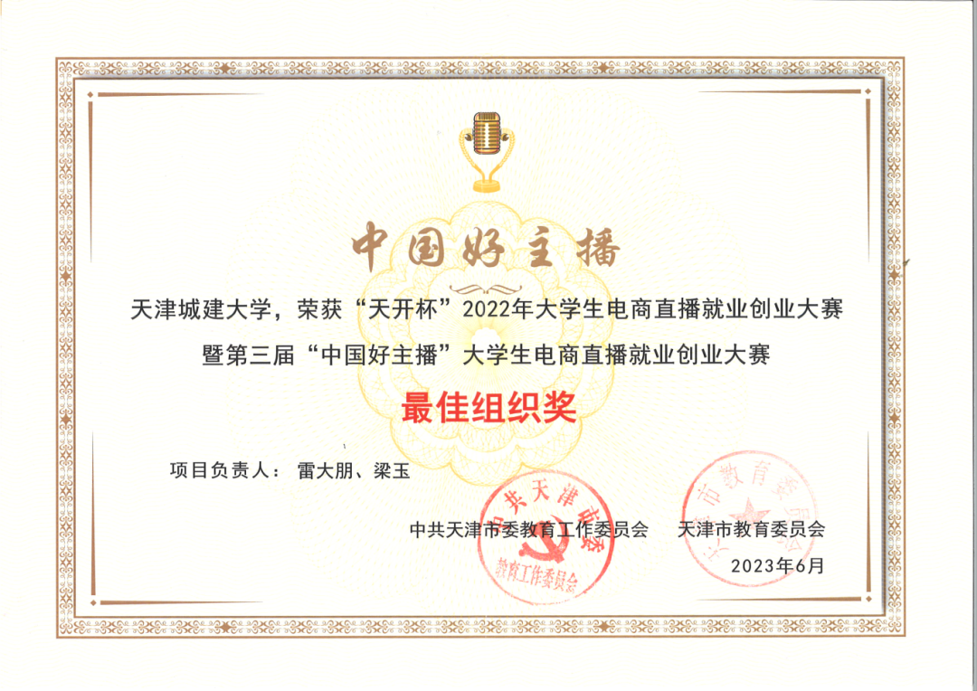 “天开杯”电商直播大赛优秀组织奖