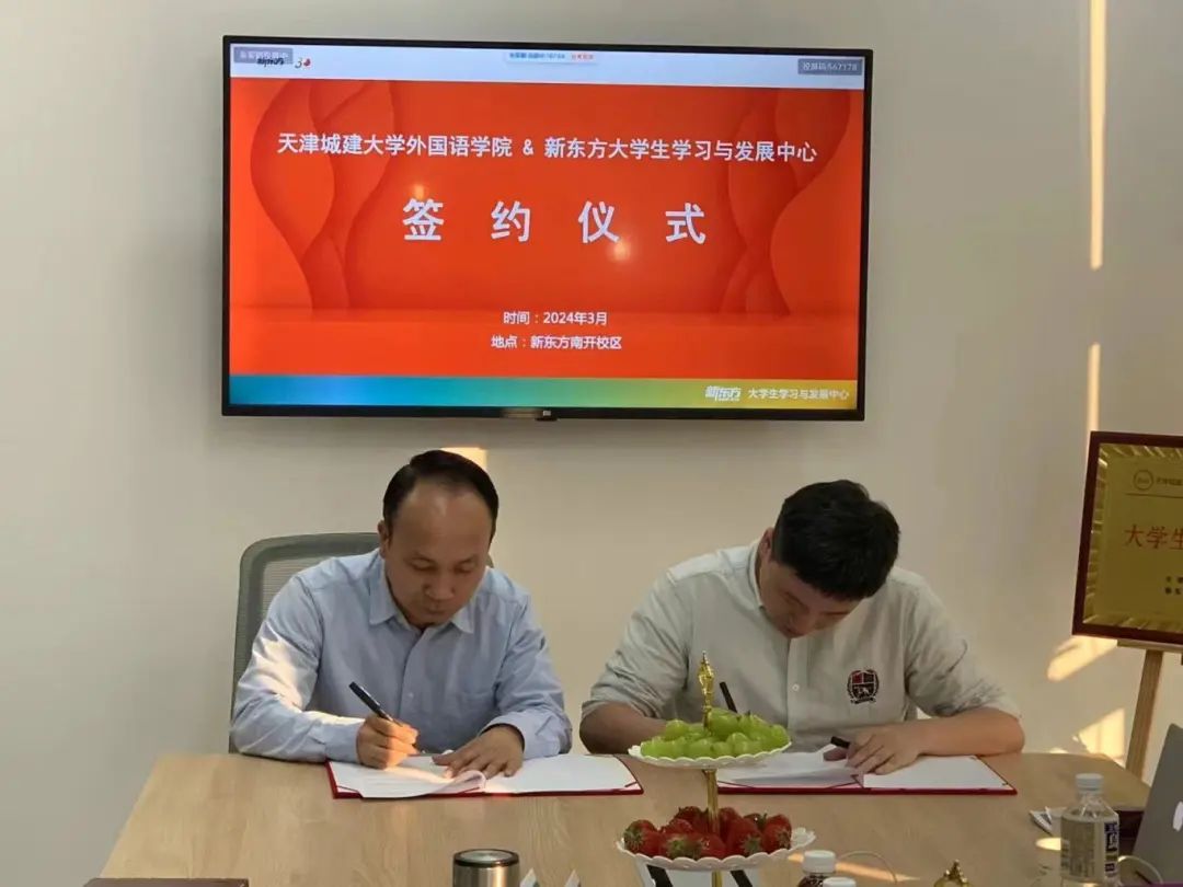 3月12日,外国语学院党总支副书记赵乾以及副院长范国文、王阳等师生代表赴天津新东方大学生学习与发展中心开展校企合作签约及授牌仪式。
