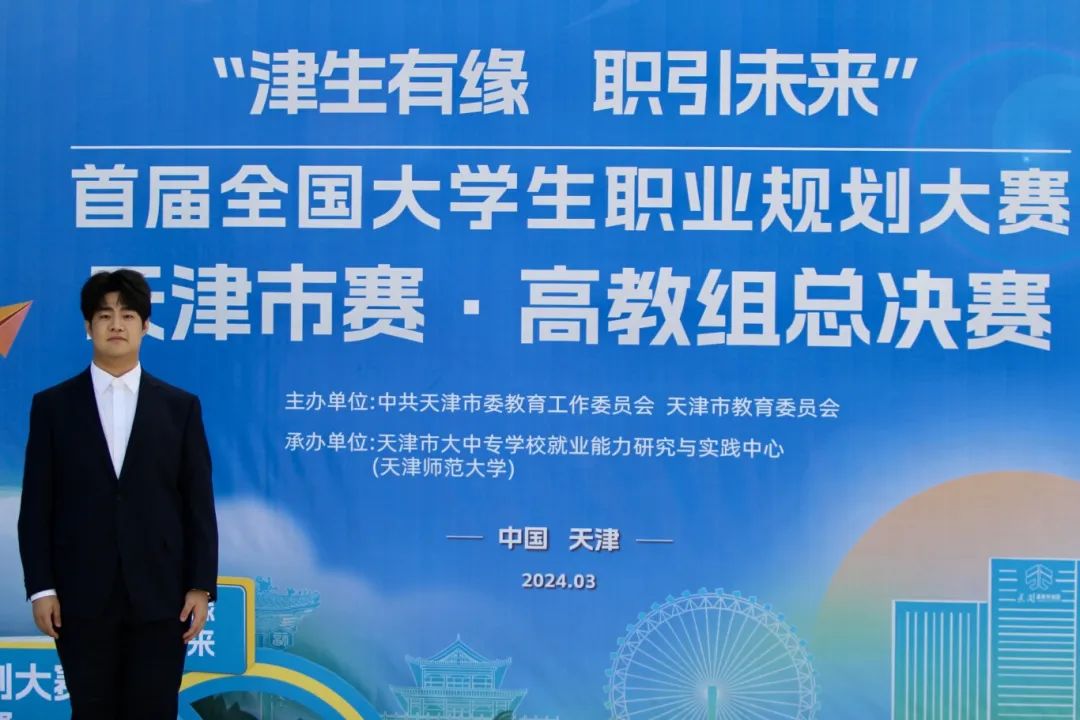 自2023年9月首届全国大学生职业规划大赛天津市赛启动以来,学校充分利用校园媒体、新媒体、宣传海报等多元传播渠道,全方位对赛事进行宣传推广,参与人数达8000余人。最终,学校推荐2名成长赛道、5名就业赛道选手参加天津市赛,经市初赛网络评审,冯磊同学荣获就业赛道铜奖。