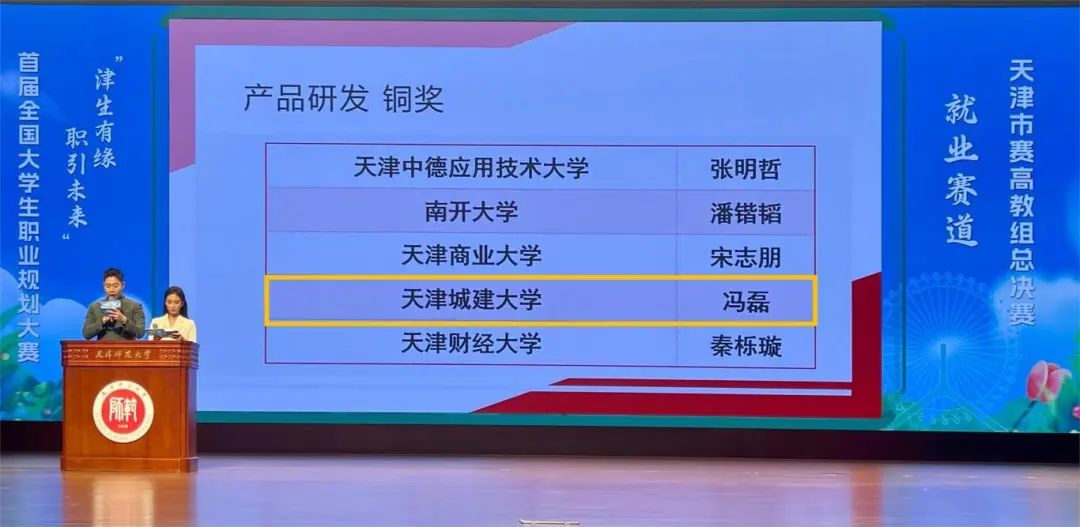 近日,首届全国大学生职业规划大赛天津市赛•高教组总决赛在天津师范大学举办,伟德官网国际工程学院学生焦一民、环境与市政工程学院学生冯磊分别荣获天津市高教组成长赛道、就业赛道总决赛铜奖。