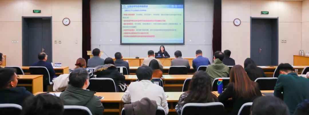 国交处工作人员介绍了国家留学基金委公派留学的相关政策,并重点就2024年国家公派访问学者项目的选派概况、伟德官网历年来申报录取情况以及学校教师派出管理要求进行了详细解读。