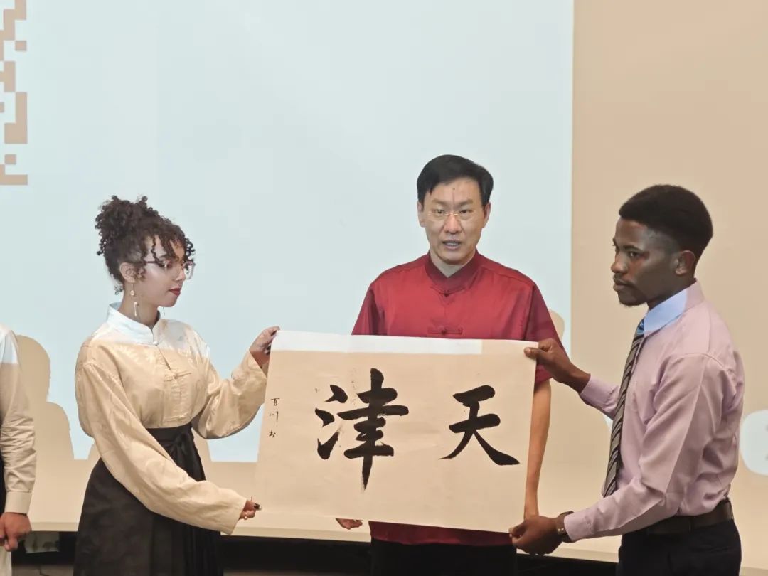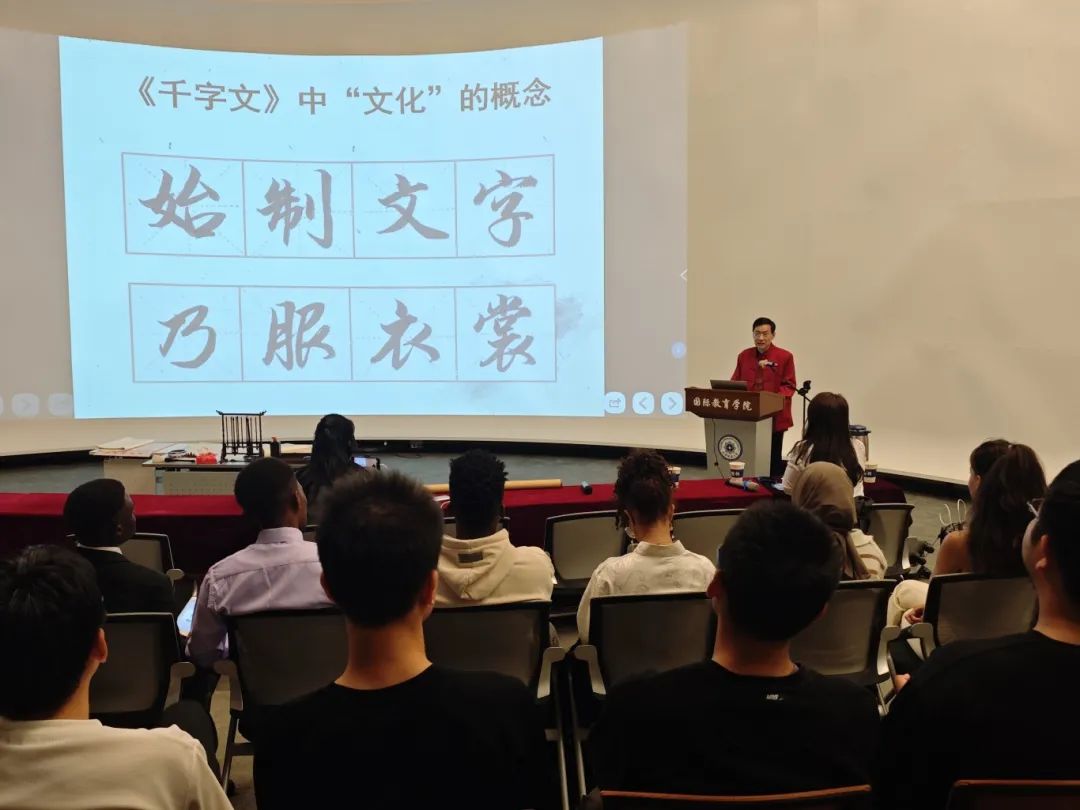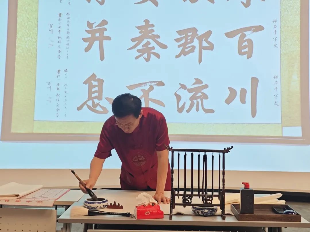 近日,北京书法家协会会员、荣宝拍卖书法作品专家百川老师为中外师生们带来了一场生动的“传承千年智慧,领略文字之美”——“千字文”国学文化讲座和书法展示活动。伟德官网中外合作办学学生和来自摩洛哥、孟加拉、乌干达、赞比亚等国家的百余名学生参加了活动。