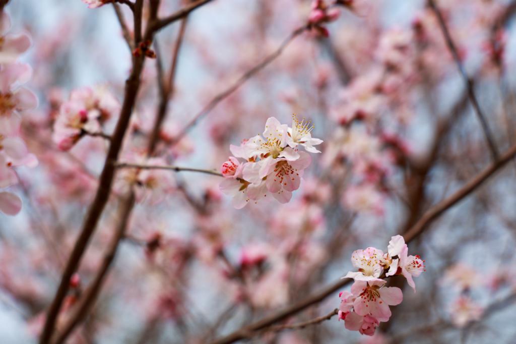 鸟儿在花枝间跳跃,分享着春天的喜悦