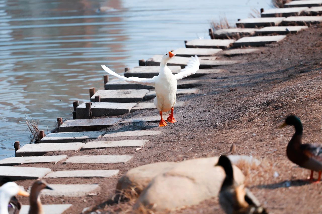 春风轻拂,鸣飞湖面泛起阵阵涟漪