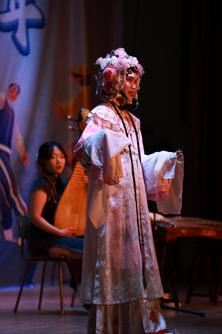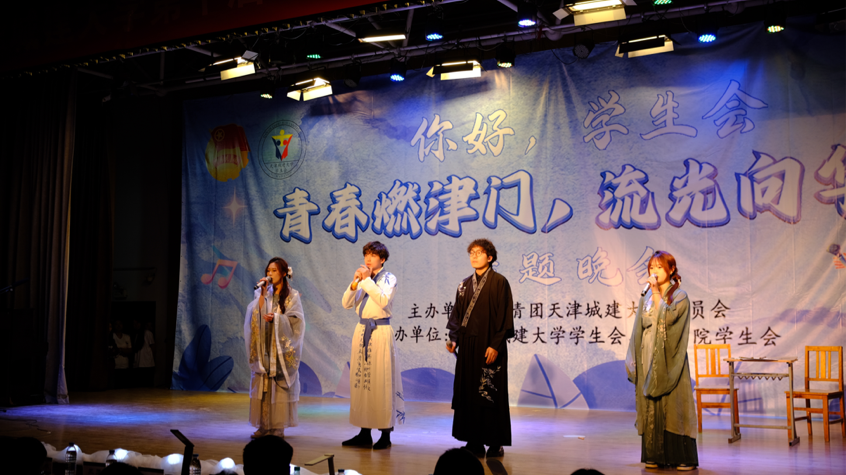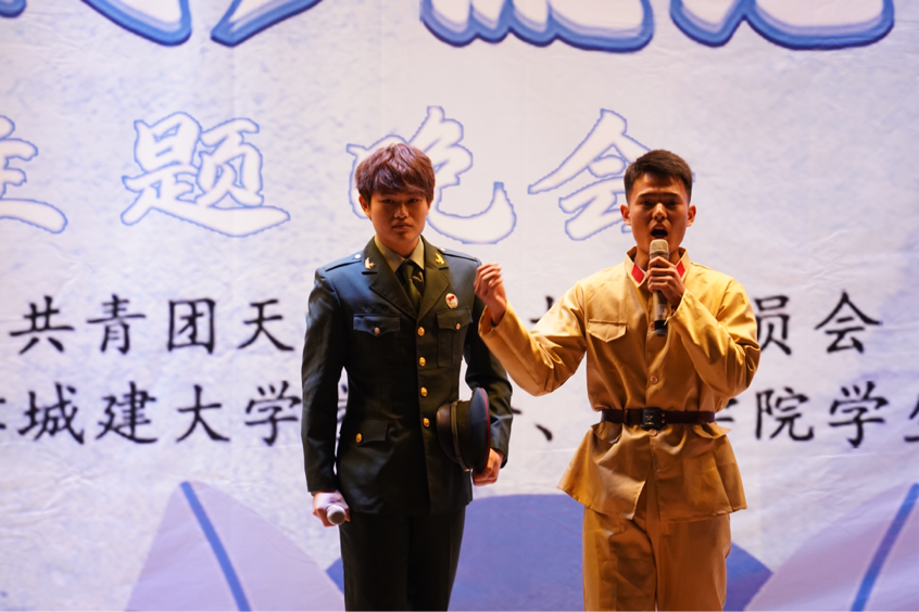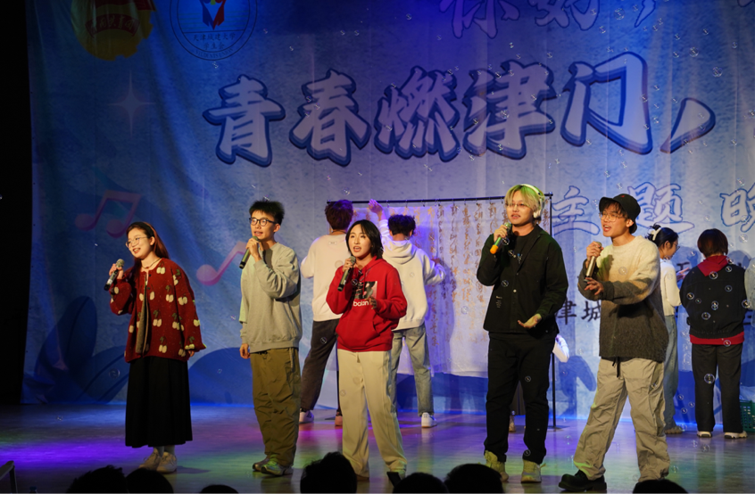 学生们通过情景剧、相声、京剧、手势舞、古筝、竹笛表演等多种艺术形式,演绎着弘扬优秀传统文化的底气,传递着激昂的青春力量。舞台剧《星火》故事情节新颖,以革命先辈与新时代青年的跨时空对话,展现了不同时代青年的家国情怀。《津门流年,青春之光》围绕爱国、敬业、诚信、友善四个主题展开故事,通过生动的演绎展现优秀传统文化的魅力和同学们乐观向上的奋斗精神。《仰望星空》用较为轻松的氛围寓教于乐,呼吁同学们要传承雷锋精神、为同学服务。《似水年华》以京剧形式开场,用优美的唱段展示了津门特色,“怕流水年华春去渺”,体现出青春的热烈和对时间流逝的感叹。另有《绽放》《筑梦青春》等精彩节目纷纷上演,活动在大合唱中推向高潮,歌声嘹亮,情怀真切,配合朝气蓬勃的舞姿,展现了天城大学子的青春风采。