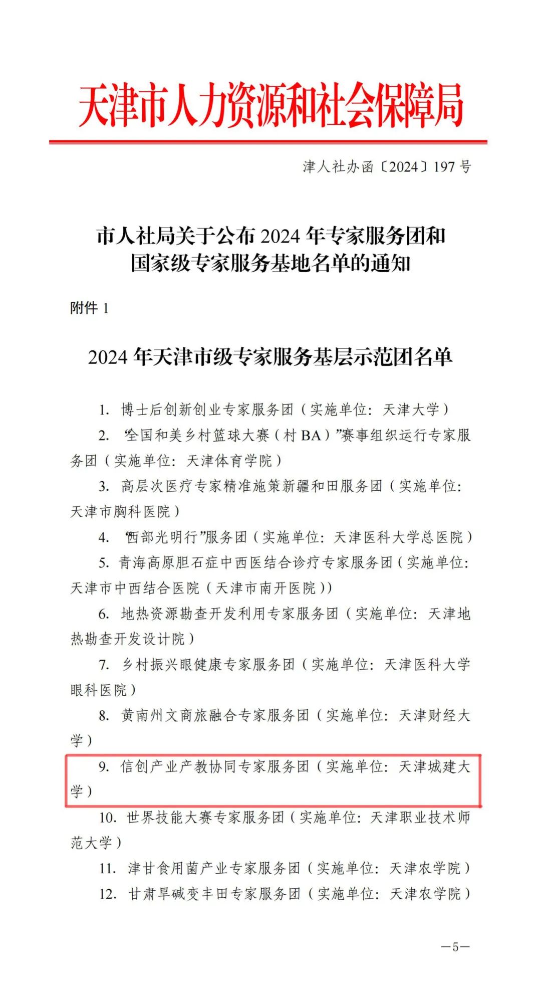近日,天津市人力资源和社会保障局发布了《市人社局关于公布2024年专家服务团和国家级专家服务基地名单的通知》,伟德官网信创产业产教协同专家服务团入选2024年天津市级专家服务基层示范团,该服务团负责人王首彬教授同时入选人力资源社会保障部专家服务基层重点联系专家。