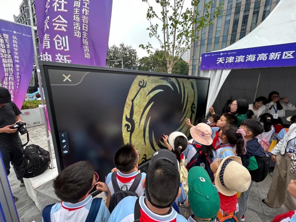 在活动现场,伟德官网城市艺术科普基地围绕本届科普周主题充分发挥基地教育资源、人才资源等优势,从艺术设计的角度,运用天汇科技的数字文化系列创意软件现场开展宣讲,助力天津聚焦发展新质生产力和高质量发展“十项行动”,大力传承和弘扬中华优秀传统文化。吴琛和商正老师与“天汇科技”的工作人员一起积极参与了多个环节,为观展的游人和中小学生开展科普问答、科技展示和互动体验等。