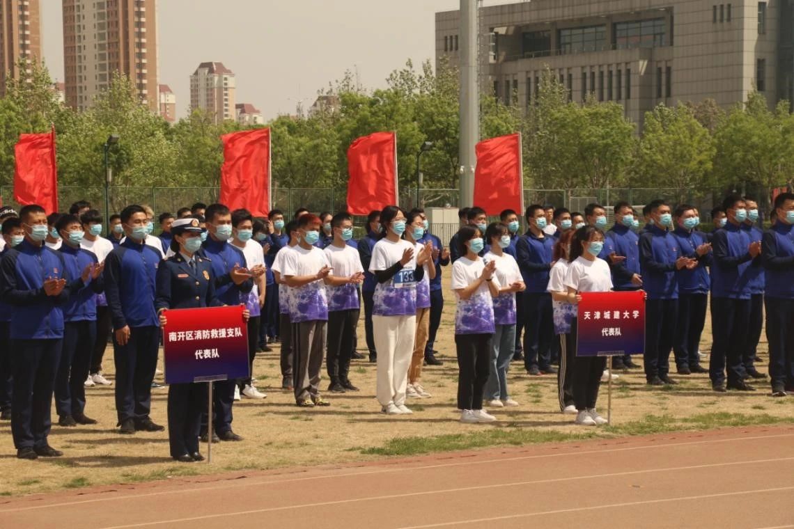 运动会上,消防指战员和控制学院学生先后进行了“物资疏散”消防技能和啦啦操汇报表演。由伟德官网义务消防员、控制学院学生以及来自高新区、西青、南开和静海区消防救援支队指战员组成的200余人的竞赛代表队,进行了13个体现消防元素的特色竞赛项目,大家同台竞技,增进了彼此了解和默契。