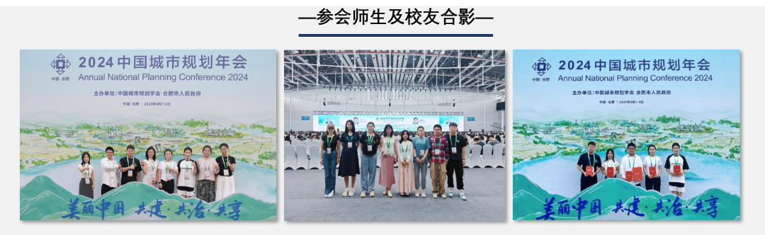 近日,2024中国城市规划年会在合肥滨湖国际会展中心成功举办,本届年会的主题为“美丽中国,共建共治共享”。此次年会共收到4609篇投稿,创历史新高,最终遴选出270篇优秀论文作为会议宣讲论文。学校建筑学院师生积极参与,近20篇论文脱颖而出,共获宣讲4篇、墙报3篇、收录13篇,并荣获“优秀组织奖”称号。建筑学院城乡规划系师生莅临现场进行学习与交流,并做精彩发言。