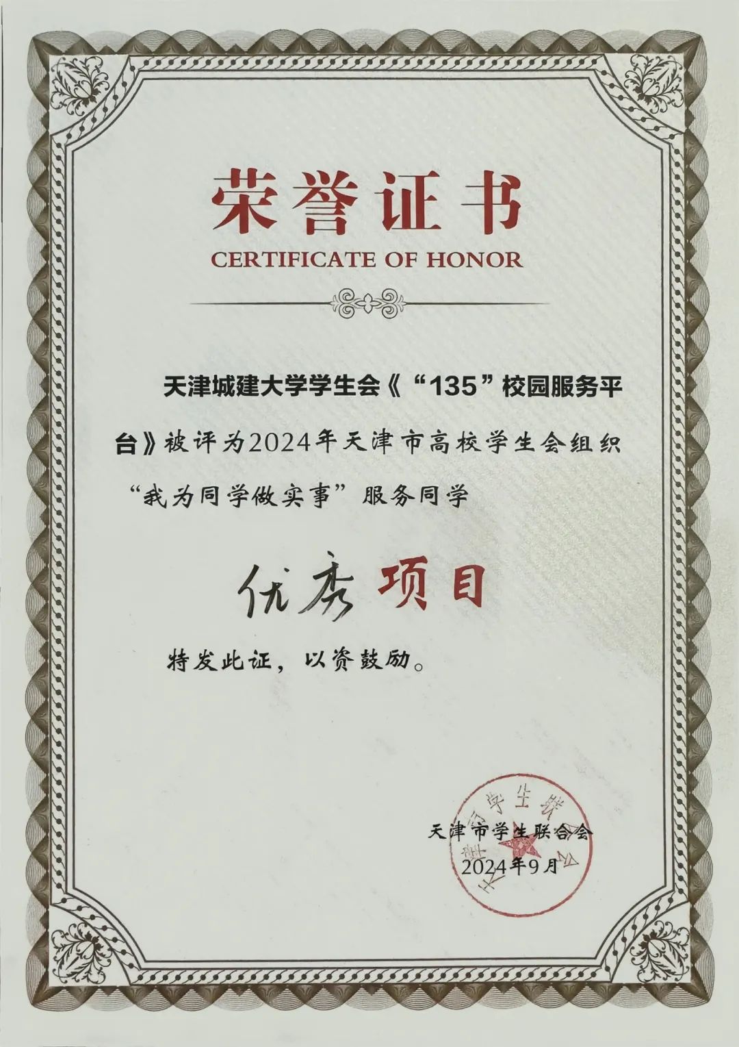 近日,由团市委指导、天津市学生联合会组织的“我为同学做实事”服务同学品牌项目市级终评展示活动落下帷幕,伟德官网学生会“‘135’校园服务平台”项目荣获“优秀项目”。