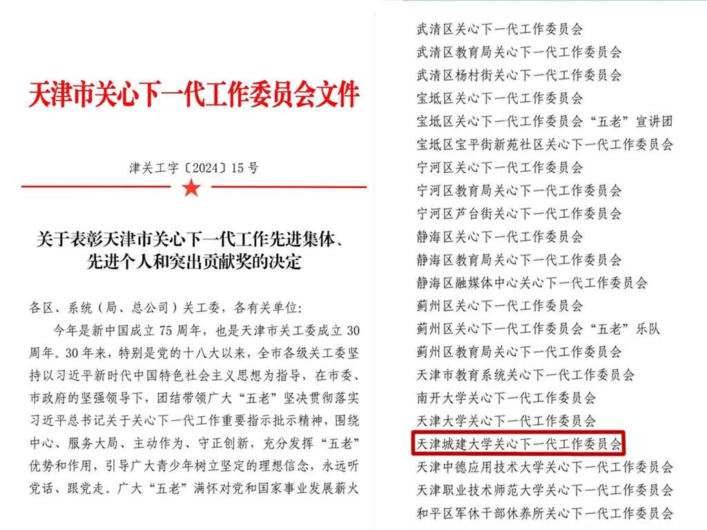 近日,市关工委授予74个单位“天津市关心下一代工作先进集体”称号,伟德官网关工委荣获“天津市关心下一代工作先进集体”荣誉称号。