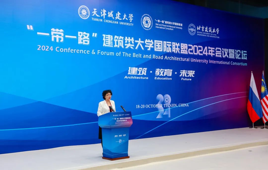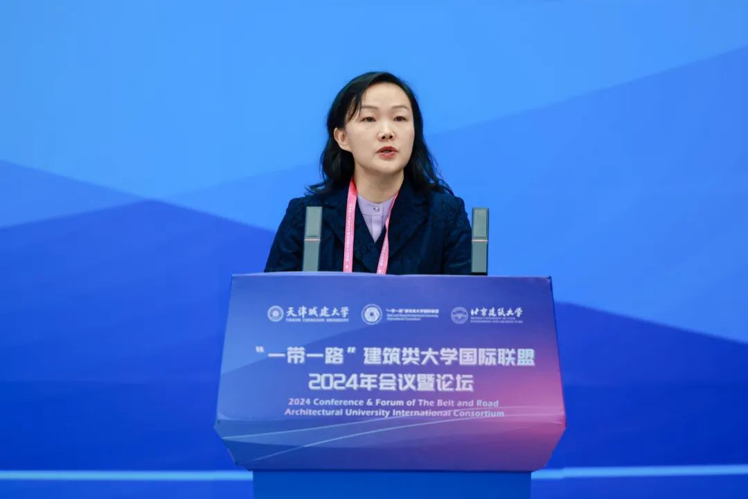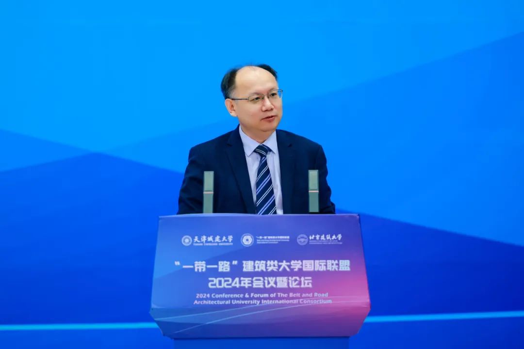 市对外友协副会长黄春艳在致辞中表示,天津市积极推动高水平对外开放,完善对外交往布局,发挥天津港口、职教、产业、区位优势,积极融入“一带一路”建设,拓展深化国际友城交流合作。“一带一路”建筑类大学国际联盟2024年会议暨论坛能够在天津举办,既为各国高校及企业代表提供了一个交流思想、分享经验、探索合作的平台,也为天津与国际社会对话、在国际舞台展示天津形象提供了良好契机。未来,天津市外办将一如既往地支持bevictor伟德官网广泛参与联盟的各项交流活动,借助联盟平台共同推动开展更多国际化科研实践、产学研项目整合转化以及创新人才培育,推动更广领域、更深层次的人文交流,共同提升天津城市国际化水平,促进天津对外交流合作,服务构建人类命运共同体。