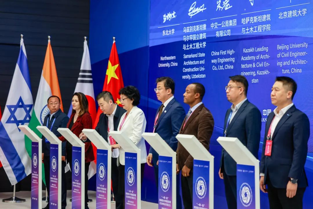 会议举行了联盟新成员单位签约暨授牌仪式,东北大学、乌兹别克斯坦撒马尔罕国立建筑与土木工程大学、中交一公局集团有限公司、哈萨克斯坦建筑与土木工程学院、埃塞俄比亚亚的斯亚贝巴科技大学、内蒙古建筑职业技术学院、广联达科技股份有限公司7所高校、企业在全体嘉宾的见证下加入联盟。至此,联盟成员单位增至30个国家的91所高校及企业,遍布世界“六大洲”,合作范围进一步扩展。