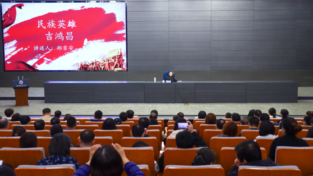 郑吉安以《民族英雄吉鸿昌》为题,从吉鸿昌烈士的生平经历、对吉鸿昌烈士的深切缅怀两个方面进行了感人肺腑的宣讲,生动详细的介绍了民族英雄吉鸿昌“为做事而做官”的为民情怀,“我是中国人”的民族气节,“死也不倒下”的坚定信念,“做官即不许发财”的清廉本色,令在场师生感动不已。
