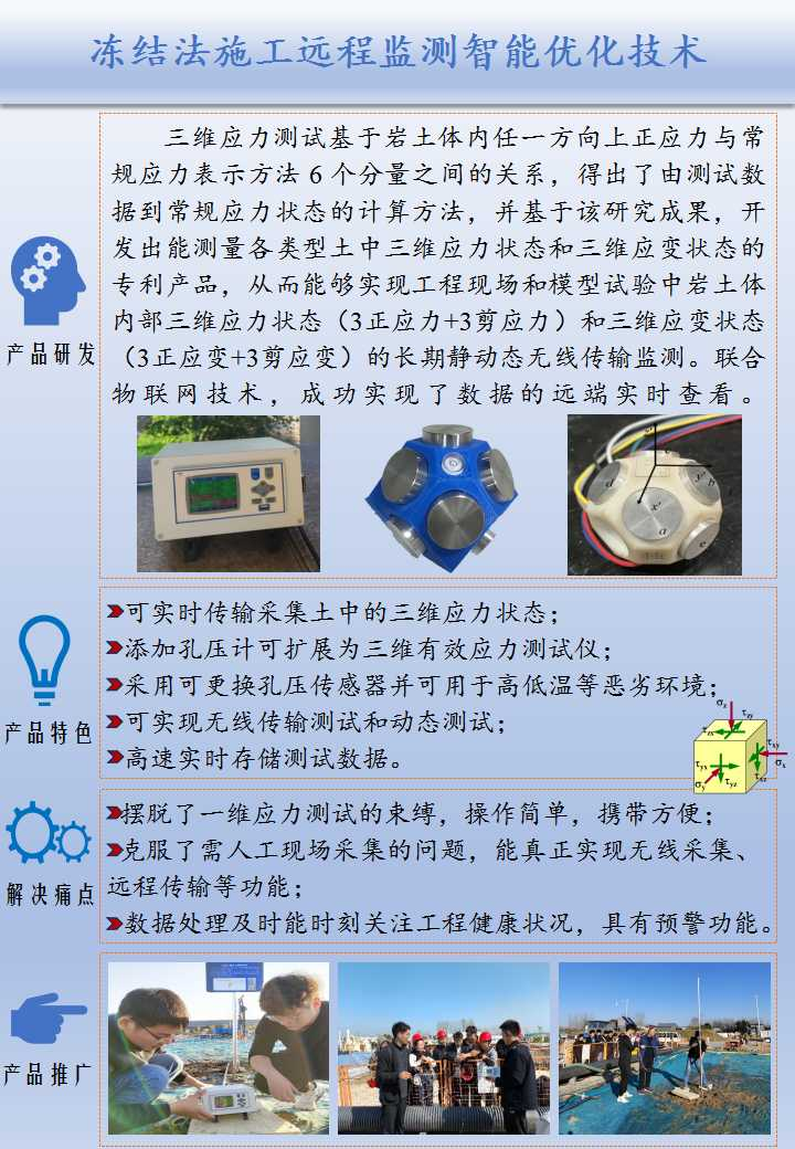 该项目解决了工程测试中人员现场采集与数据反馈滞后等痛点问题。将采集仪与物联网技术融合,开发了远程监测平台,实现了土体三维应力的实时传输与分析。平台具备工程安全监测预警、空间孪生数据可视化展现等功能,极大提高了数据采集和反馈的效率和准确性。同时,该产品能够适应不同工程环境需求,为智能建造提供了高效的数据支撑和全方位的管理方案,为行业数字化转型做出了重要贡献。