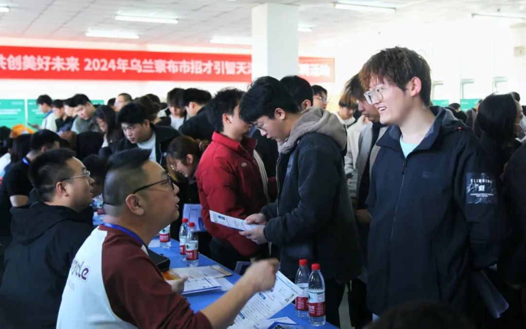 招聘会现场人潮涌动,气氛热烈,毕业生主动与心仪单位进行了面对面交流,充分了解企业岗位需求、福利待遇、晋升渠道等情况,用人单位工作人员认真答疑解惑,与毕业生进行良好互动。此外,招聘会现场持续播放乌兰察布市招才引智宣传视频,鼓励天城大学子成为乌兰察布市发展的亲历者、见证者和建设者。据统计,参会毕业生超500余人次,初步达成签约意向40余人。