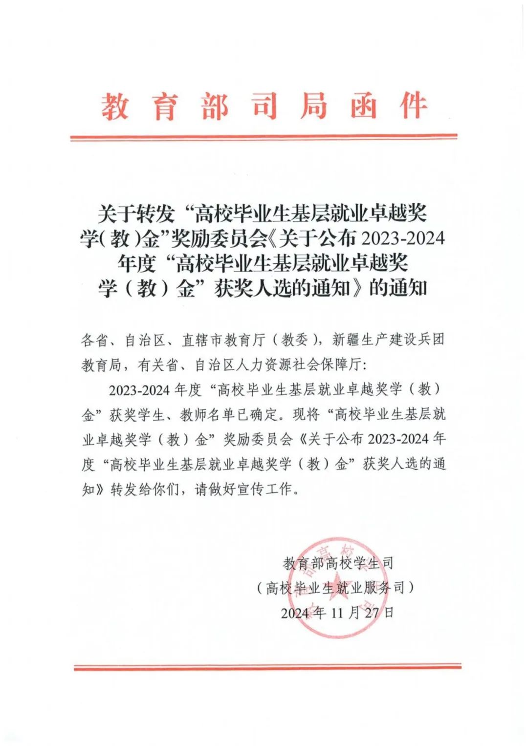 近日,教育部高校学生司转发了“全国高校毕业生基层就业卓越奖”奖励委员会《关于公布2023-2024年度“全国高校毕业生基层就业卓越奖学(教)金”获奖人选的通知》,全国共有398名毕业生获奖,天津市共有7名。伟德官网2017届硕士毕业生张晶获此殊荣,这也是伟德官网连续两届荣获“全国高校毕业生基层就业卓越奖”。