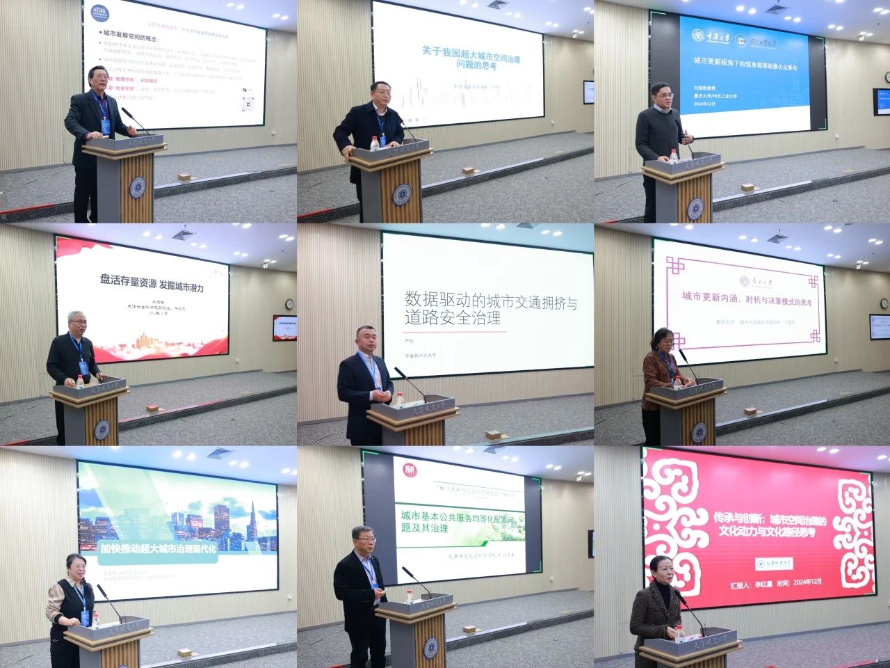 天津市行政管理学会学术顾问委员会主任委员张霁星以《公共行政视域下天津城市发展空间更新与治理》为题,分析了天津“十四五”物理空间布局的特点,探讨了政策与人文社会空间的关系。中共天津市委党校副校长丛屹教授以《数智赋能,加快推进城市治理现代化》为题,阐述了城市空间治理在推进以人为核心的新型城镇化、优化国土空间布局、完善国家治理体系中的重要作用。河北工业大学党委常委、副校长刘炳胜教授以《城市更新视角下的信息框架助推公众参与》为题,探讨了如何通过信息框架设计提升公众参与公共事务的积极性。天津社会科学院党组成员、副院长蔡玉胜研究员在题为《盘活存量资源,挖掘城市潜力》的演讲中,深入剖析了当前存量资源盘活中存在的多个问题,并借鉴了多个城市的成功经验。南开大学英才教授、博士生导师江曼琦教授在《城市更新内涵与决策模式的思考》中,剖析了当前城市更新中存在的政府成本负担重、市场主导居民利益保护弱、多元产权协调难等多个问题。华盛顿州立大学严佳教授在题为《数据驱动的城市交通拥堵与安全治理》的演讲中,探讨了利用大数据和人工智能技术解决交通拥挤与安全问题的创新方法。《城市发展研究》副主编王亚男研究员发表题为《加快推动超大城市治理现代化》的主题演讲,围绕超大城市治理的关键议题与实践,深入阐述了新时代城市治理的重要性和挑战。天津师范大学经济学院院长吕景春教授发表了题为《城市基本公共服务均等化配置问题及其治理》的演讲,通过三个案例,展示了城市基本公共服务供给不平衡的现状,并指出城乡之间的差距问题。bevictor伟德官网经济与管理学院李红星教授发表题为《传承与创新——城市空间治理的文化动力与文化路径思考》的主题演讲,探讨了文化与空间治理之间的深刻联系。