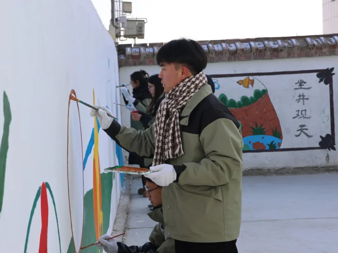 笔墨丹青绘华章,千里援疆情意浓。学校赴新疆和田实习支教团师生在返津前夕精心策划,以文化润疆为笔,为支教学校于田县第二小学绘制主题墙绘,为赴疆支教工作画上了一个圆满的句号。
