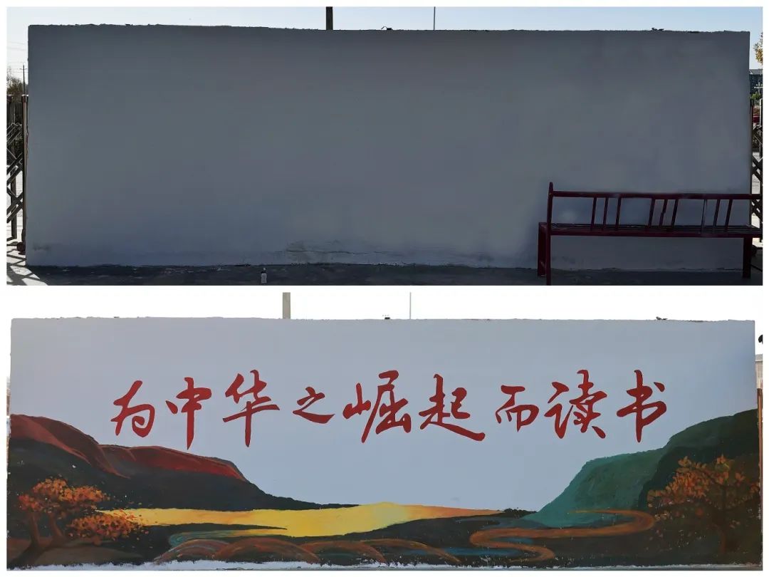 《为中华之崛起而读书》墙绘前后对比图