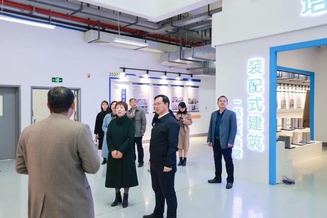 会后,陈志华陪同王素云一行参观考察了学校智慧教室和工程实训中心,深入了解了学校智慧化教学管理和教学资源配置优化、装配式建筑实训平台和实践教学取得的成果。
