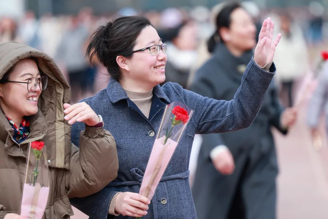 活动前,校工会向到场参加活动的老师们献上了鲜花和美好的祝福。伴随轻松欢快的音乐,大家精神饱满、神采奕奕,相互交流、相互勉励,带着愉悦的心情、迈着矫健的步伐,在欢声笑语中大步前行,以轻松的心态享受着健康运动带来的身心愉悦。浩浩荡荡的队伍宛如一条灵动的长龙,为校园增添了一道靓丽的风景线,充分展现了伟德官网广大女教职工巾帼不让须眉、积极进取和团结奋进的精神风貌。