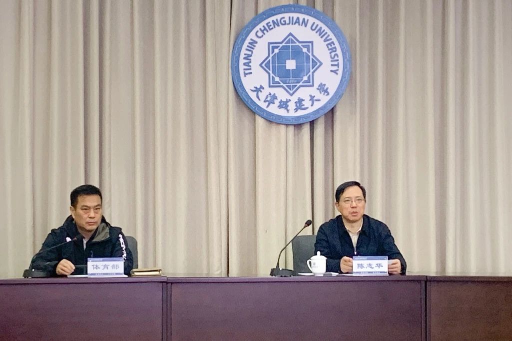 陈志华对体育工作取得的成绩给与了充分的肯定,结合相关工作进行了部署。他表示,近年来学校持续推进体育课程改革,充分发挥学生体育社团作用,广泛开展校园群众体育活动,形成了赛程贯穿全年的校园体育竞赛体系。体育节和运动会是落实“城大行动”的举措之一,也是推动伟德官网体育工作水平和提高师生体育运动能力的有效载体,全体裁判员、工作人员要认真准备,严守规则,保证各项竞赛顺利进行。各学院要以运动会为契机,认真开展学生阳光体育运动,组织学生积极参与体育运动。各部门和二级学院要细化工作方案和阶段性目标,共同推进重点项目建设,打造城大竞技体育品牌。