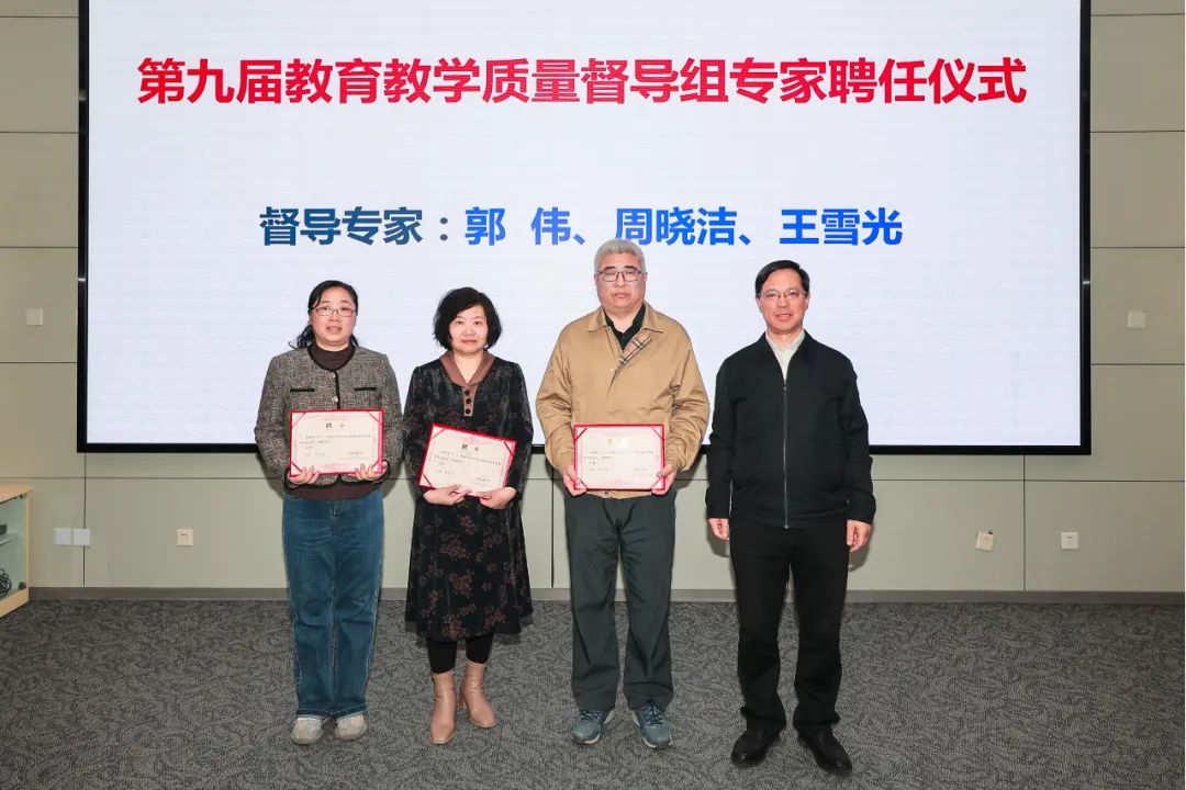 会议第二阶段召开第九届教育教学质量督导组专家聘任会。会上,赵国敏宣读了第九届教育教学质量督导组专家名单。陈志华为受聘校级督导专家颁发聘书。郭伟教授代表新一届教学督导组专家发言,她表示督导组全体成员将坚守教育质量初心,认真履行工作职责,切实发挥“督”和“导”的作用,及时关注教育改革动态,推动督导模式不断创新,落实好教学质量闭环管理,为学校的教育事业发展贡献力量。