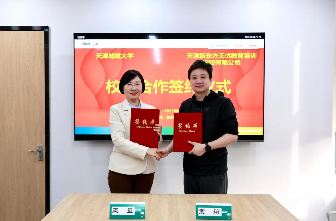王罡对天津新东方无忧教育培训学校有限公司长期以来对学校教育事业的支持表示衷心的感谢。她表示,新东方是我国领先的综合性教育服务机构,在语言教育、出国留学等领域具有强大的品牌影响力和资源优势。此次合作,为校企双方在人才培养、科学研究和教育实践等方面搭建了良好的沟通平台。今年是教育强国建设全面布局、高位推进之年,也是“十五五”规划的开局之年,希望通过此次合作,双方能够实现资源共享、优势互补,为学生提供更加丰富的实习和就业机会,共同培养契合社会发展需求的高素质人才。