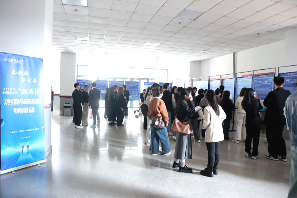现场展示,热闹非凡。各参赛团队通过实物模型、数据图表、多媒体演示等多种方式,直观呈现项目成果,仅仅几分钟的现场展示折射出参赛团队数百个日夜的科研深耕。答辩现场精彩纷呈,社科赛场聚焦社会民生热点,参赛团队通过案例剖析、数据可视化呈现等方式,展示了乡村振兴、智慧养老等调研成果,体现出天城大青年学子的人文关怀与社会责任。科技赛场充满创新活力,从智能机器人到环保新材料,从实验模拟数据到工程模型演示,一件件实物作品的动态展示将抽象研究成果转化为可感知的科技创新,凸显学科交叉融合优势。自然论文赛场聚焦科技前沿,通过详实的数据分析和严谨的逻辑论证,全面呈现了作品的创新理念和技术突破,展现出扎实的科研素养与创新意识。