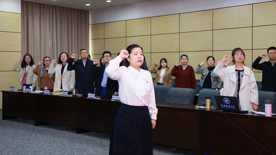 天津市十佳辅导员、计算机与信息工程学院学生工作办公室副主任周涵带领大家重温《高校辅导员誓词》。