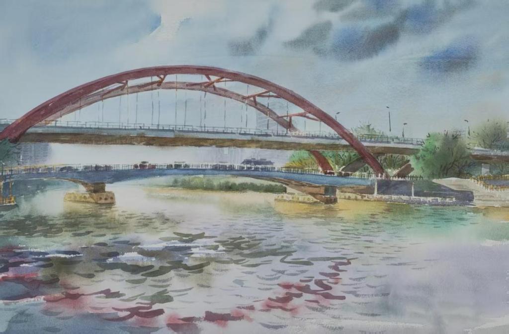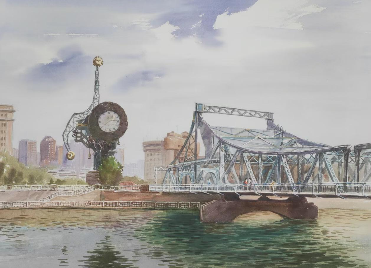 毕留举教授以天津的母亲河——海河为主线,创作了外环线以内19座海河桥作品,还针对海河桥两岸附近的建筑创作了20多幅作品,作品表现了海河桥及两岸城市风光、展现城市独特魅力的作品,探寻天津这座“中西合璧,南北交融” 城市的发展故事,展现天津经历“因河而兴,因桥而盛”的城市发展脉搏和历史文化底蕴,激发大众热爱天津、建设天津的热情。