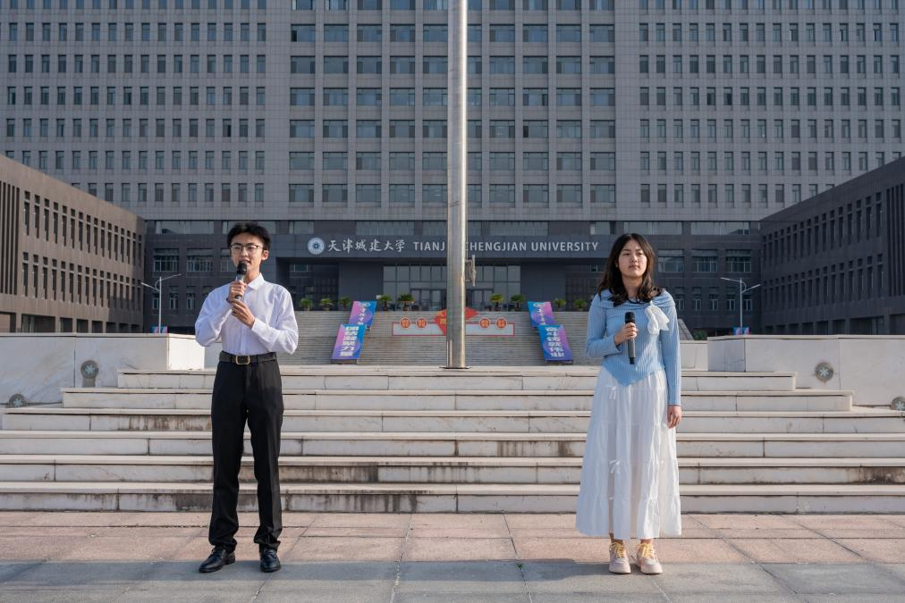 在庄严的国旗下,计算机学院学生代表刘润东与李香瑞以《青春中国》为题,用雄浑豪迈的辞藻,为现场师生徐徐展开一幅幅腾飞中国的壮美长卷,用铿锵有力的文字,让在场每一位师生心间激荡起层层爱国的澎湃浪潮,久久不能平息。