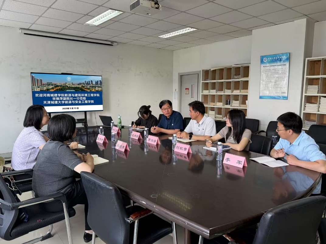 王建国对河南城建学院能源与建筑环境工程学院副院长宋艳萍一行表示欢迎,并详细介绍了能源学院的历史沿革、学科布局及“依托行业、服务城市”的办学理念。杨斌介绍了学院师资、科研项目等发展状况,表示校际智慧共享是推动学科专业的高质量发展的重要环节。