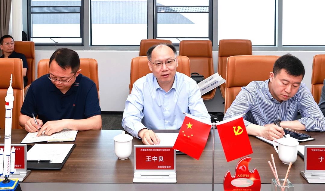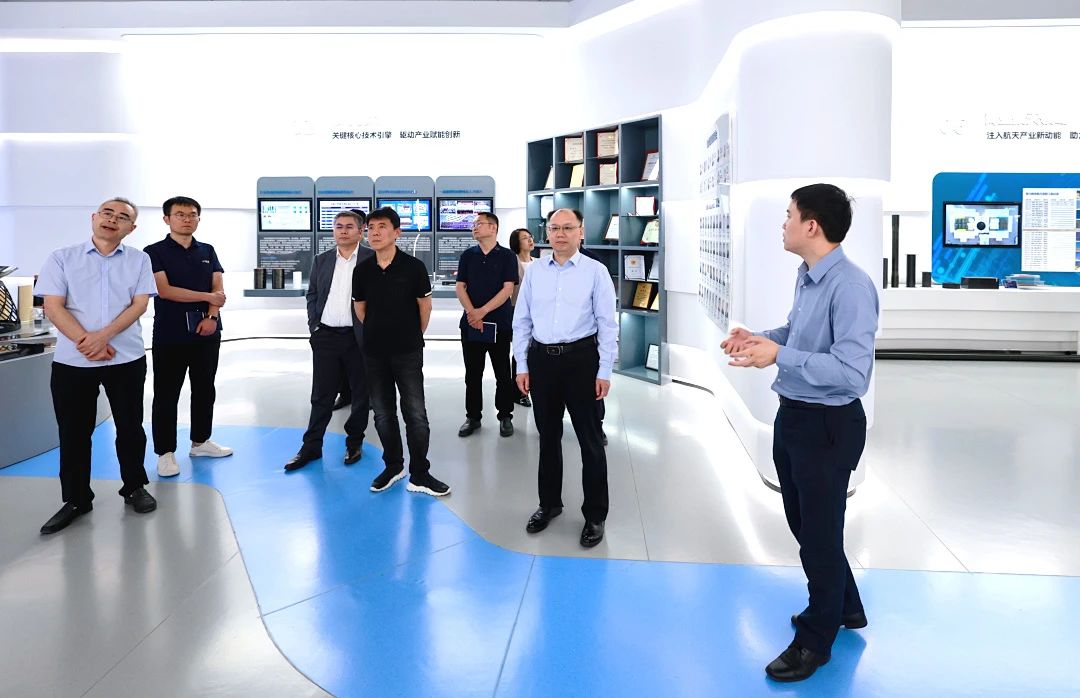 王中良一行参观了天津爱思达航天科技股份有限公司企业展厅和生产车间,详细了解了解企业经营发展、技术应用、市场销售等情况。