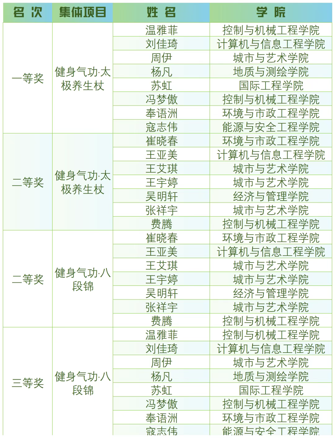 在5月24日至25日在滨海新区汉沽体育馆举行的“我要上全运”体彩杯天津市全民健身健康运动会健身气功比赛暨全国百城千村健身气功交流展示天津市健身气功站点联赛中,伟德官网健身气功代表队再创辉煌,共获得集体项目一等奖1项、二等奖2项和三等奖2项,共获得2块金牌、1块银牌、2块铜牌等多项个人荣誉。