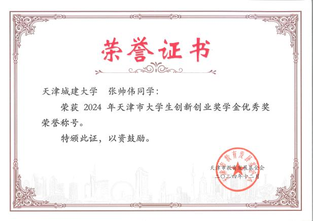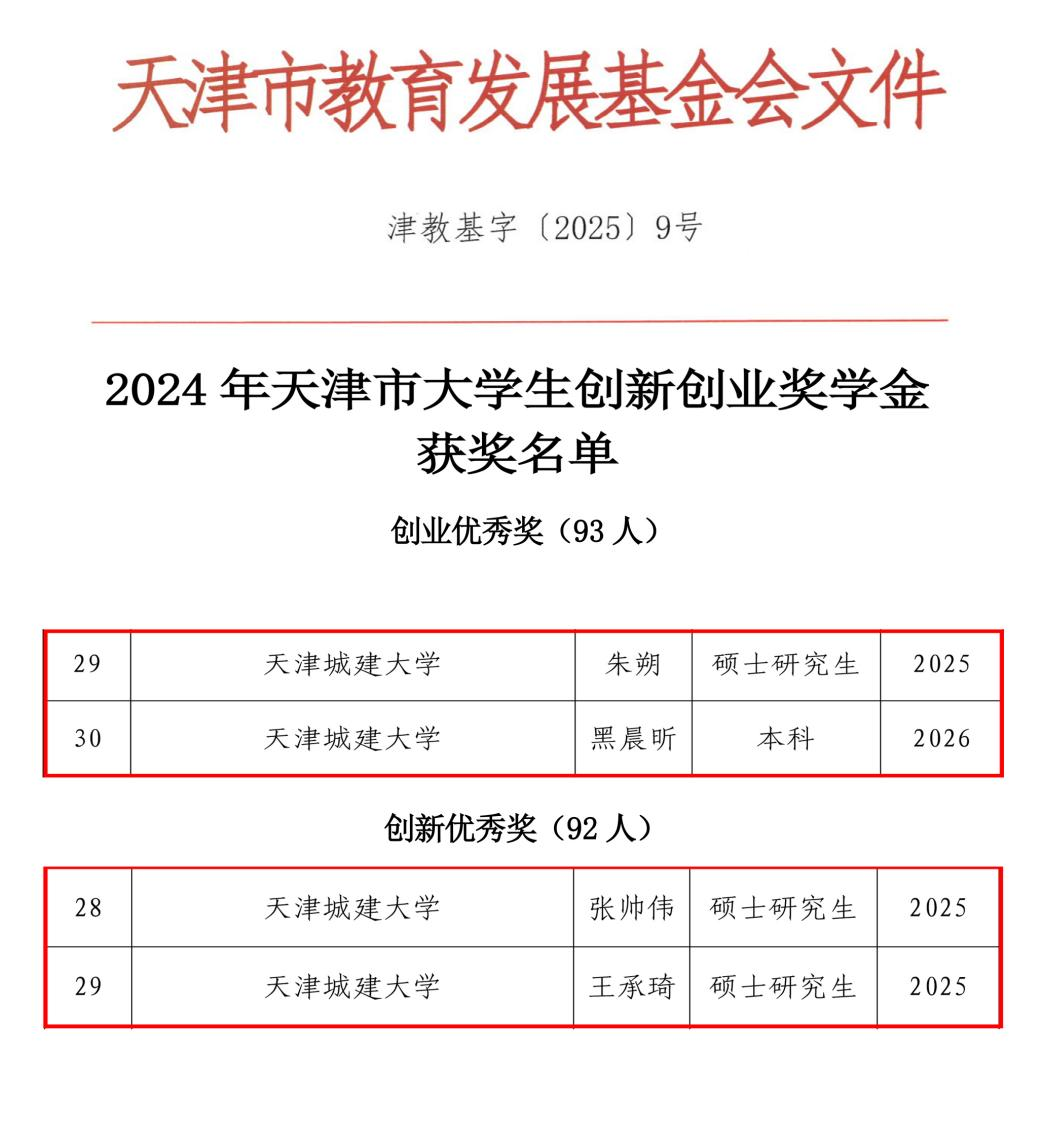 日前,天津市教育委员会、天津市教育发展基金会联合组织开展了2024年天津市大学生创新创业奖学金评选工作,伟德官网4名学生荣获天津市大学生创新创业奖学金。