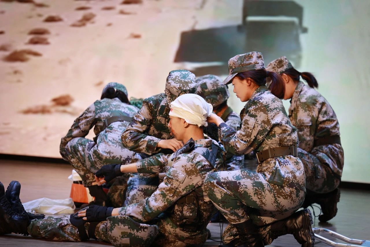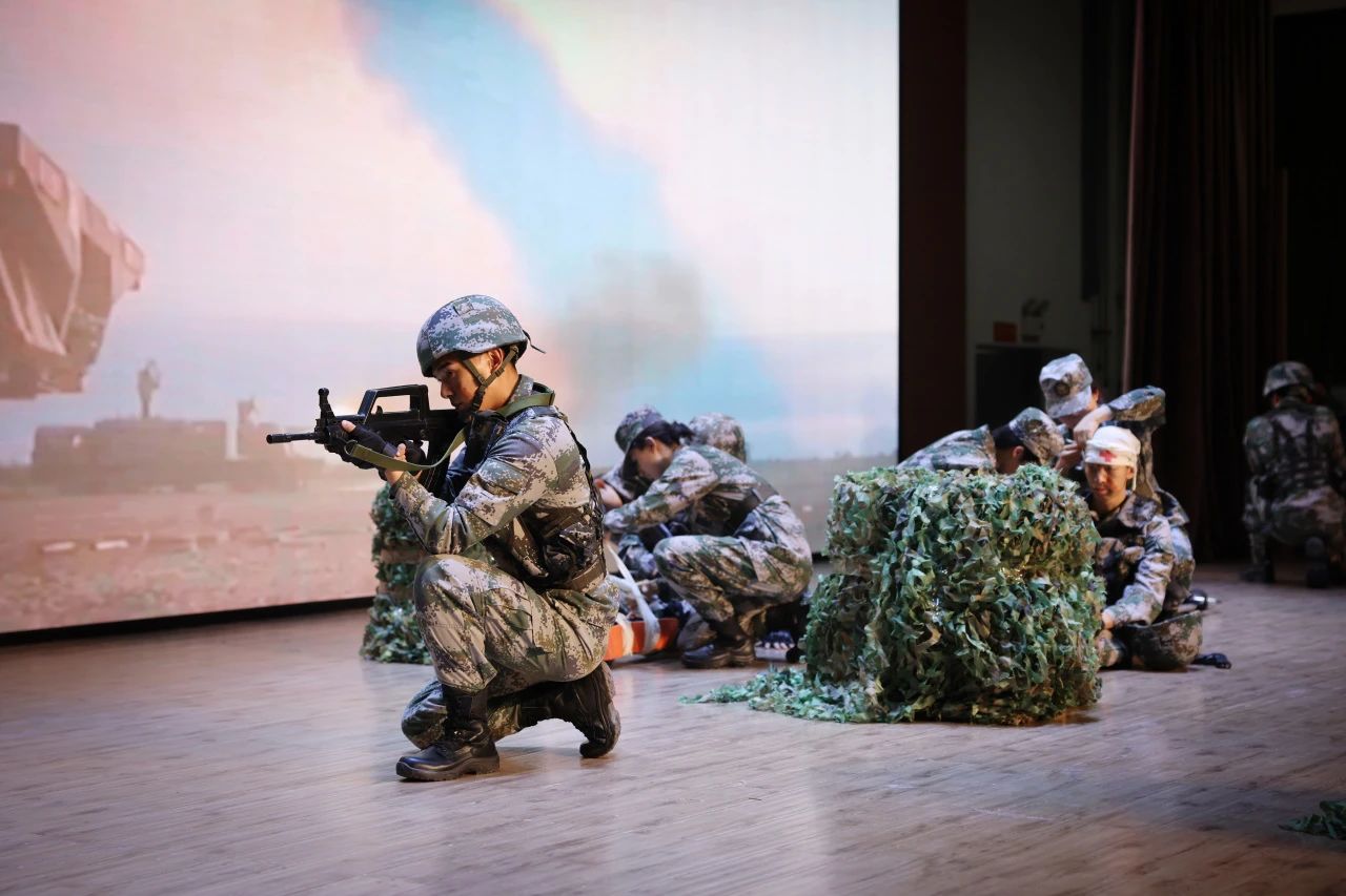 随后,《队列与战术》《刺杀操》《战术综合演练》等精彩演示依次展开,充分展现了大学生预备连学生过硬的军事素养和飒爽英姿,赢得了师生们阵阵掌声。