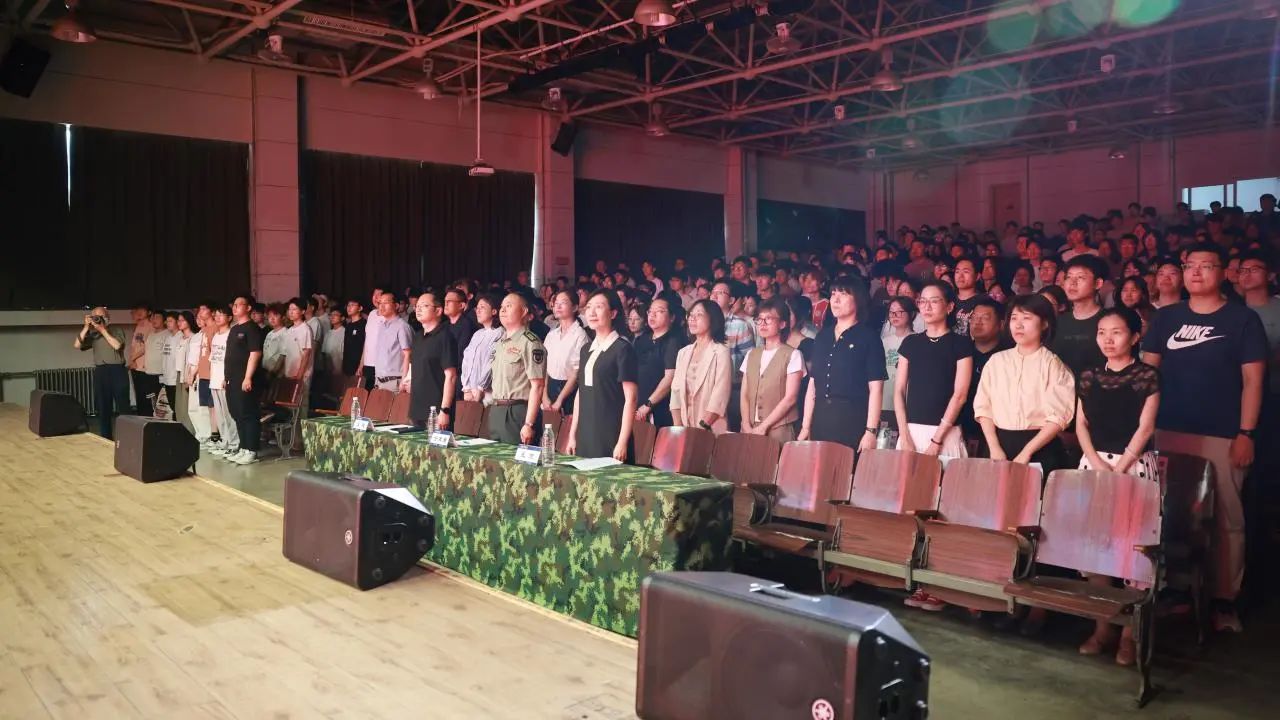 大会在庄严的国歌声中拉开帷幕,全体人员奏唱中华人民共和国国歌,激昂的旋律点燃了现场师生的爱国热情。